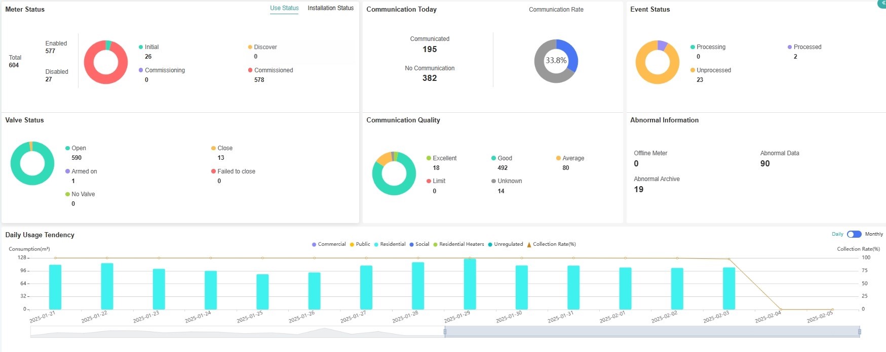 主页,为您呈现全城,乃至全国的燃气表运行状态汇总。